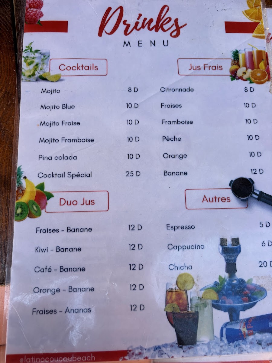Finally, meat lovers can indulge in the Plat Viande Grillée, a grilled meat platter that showcases a variety of tender meats, cooked to perfection and full of rich, smoky flavors. Each of these dishes offers a taste of Tunisia’s best ingredients, ensuring a memorable dining experience. With its diverse menu, Latino Coucou Beach caters to all tastes, making it a must-visit for anyone in the area.